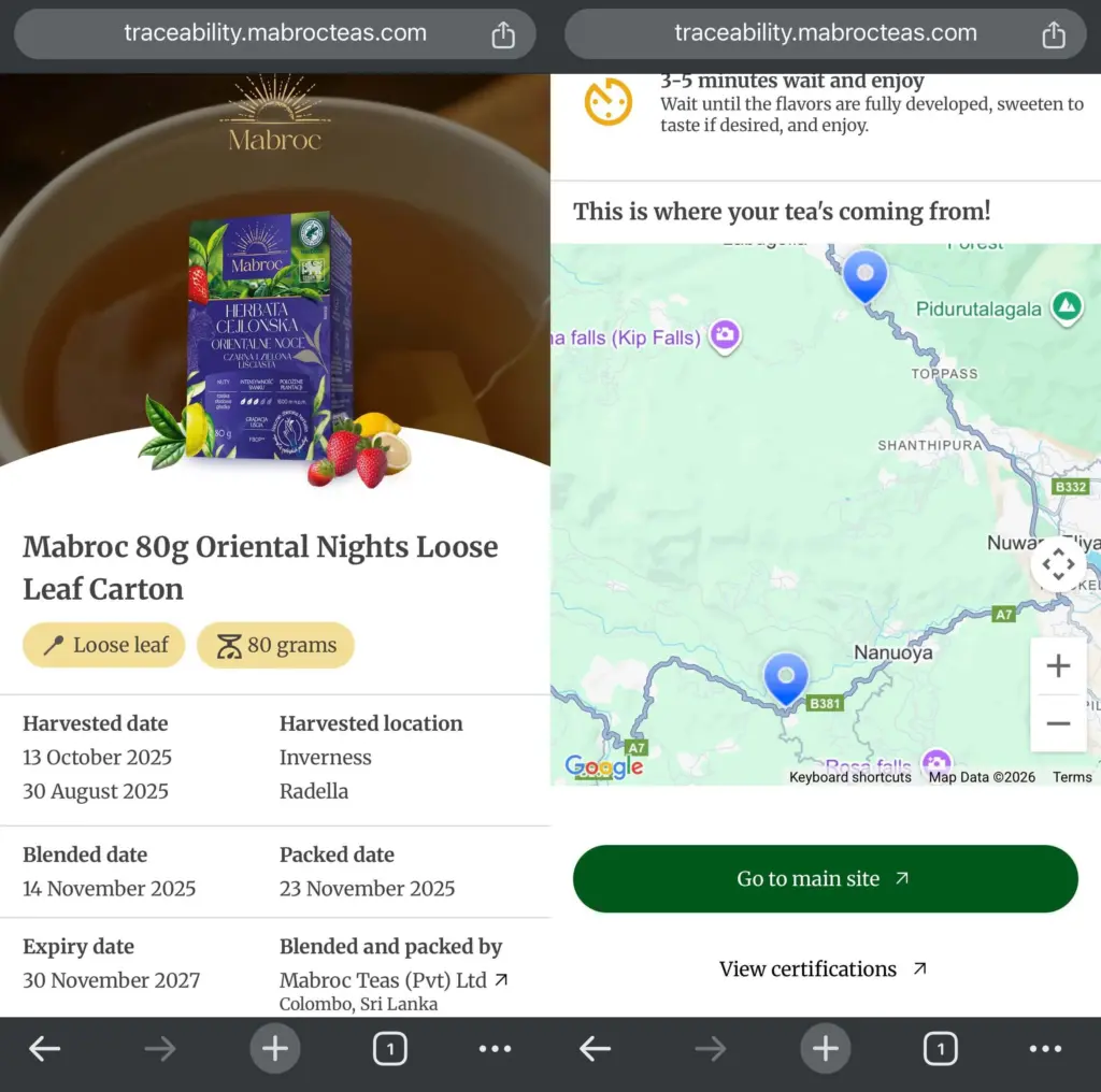 Unlike traditional marketing propositions, TeaTrace prioritises verifiable, technical information, addressing the demands of European procurement teams navigating ESG reporting, deforestation risks and ethical sourcing compliance. Each retail pack carries a QR code linking consumers, buyers and auditors to batch-specific information: estate profiles, production dates, processing steps and relevant certifications.